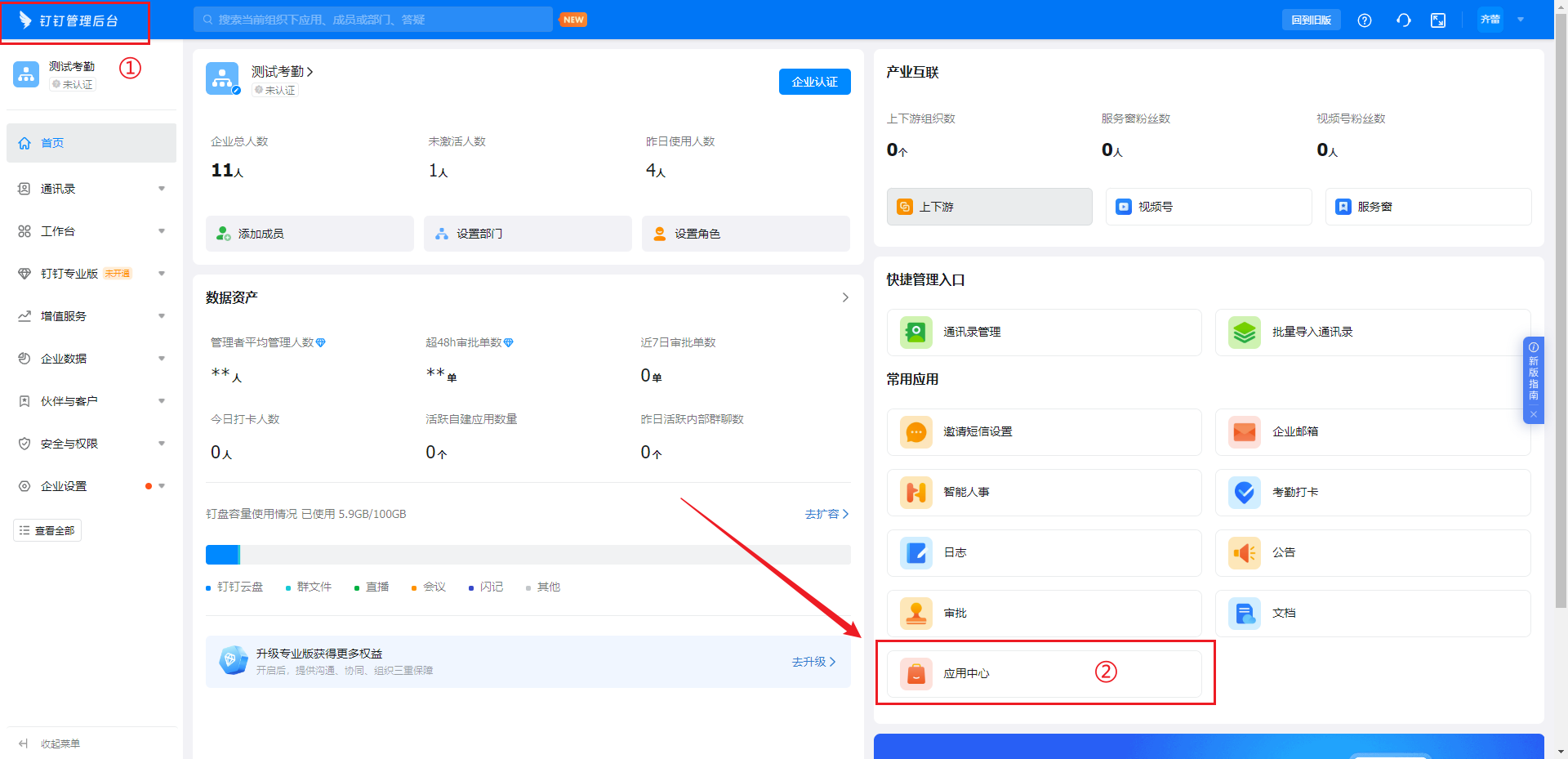 钉钉管理员,登录钉钉管理后台;(https://oa.dingtalk.com/index.htm#/welcome);