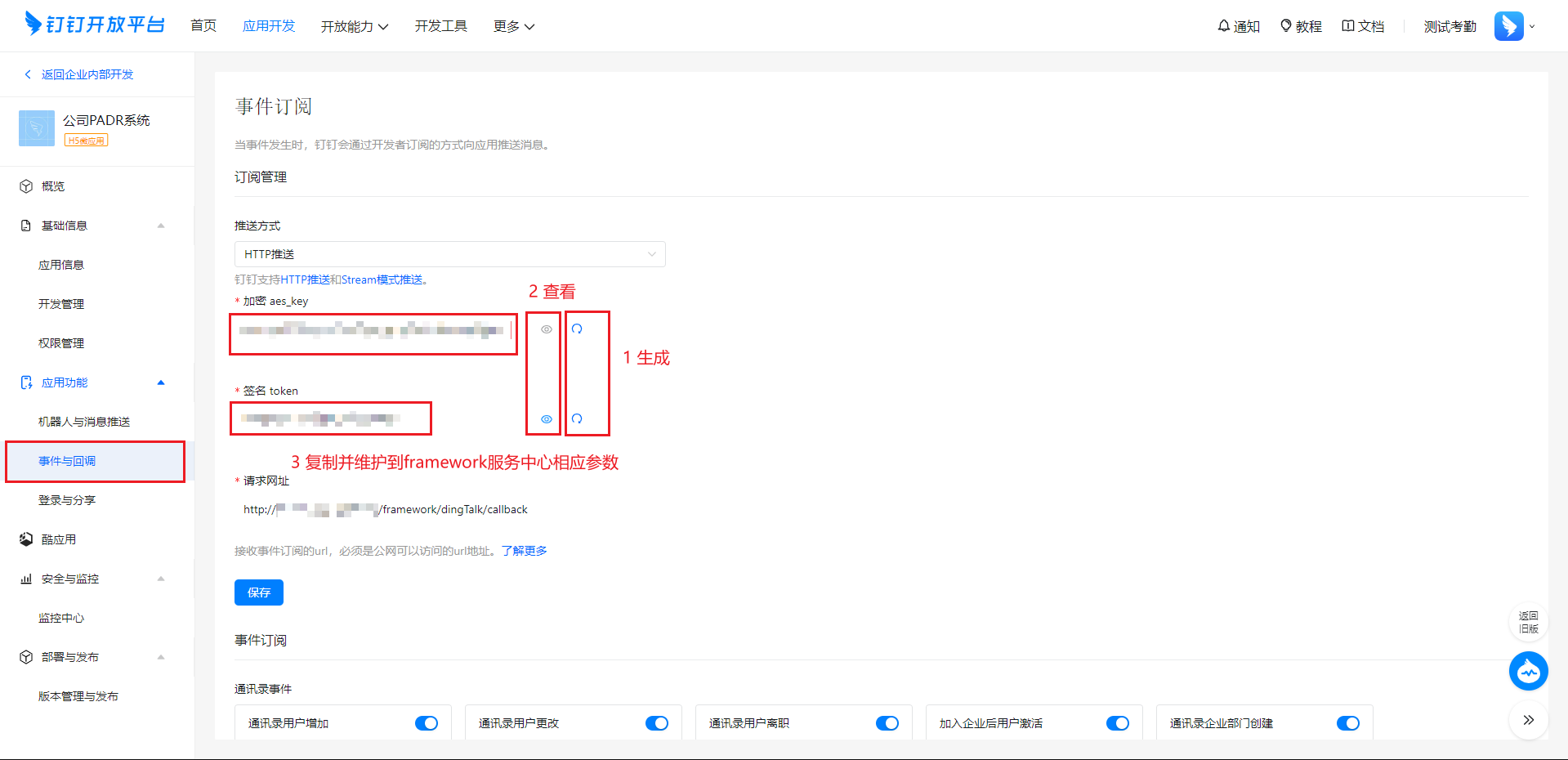 此时,钉钉管理页面需要维持在“事件与回调”页面,