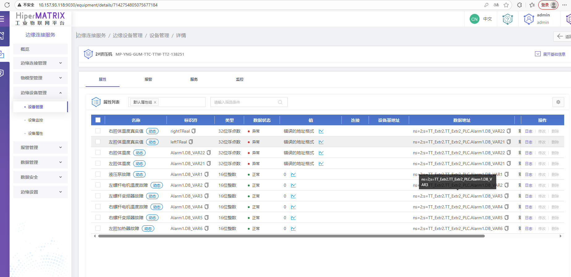 原因:(1)确认点位地址是否正确;核对数据类型是否一致(可查看edge-connection日志确认错误问题)